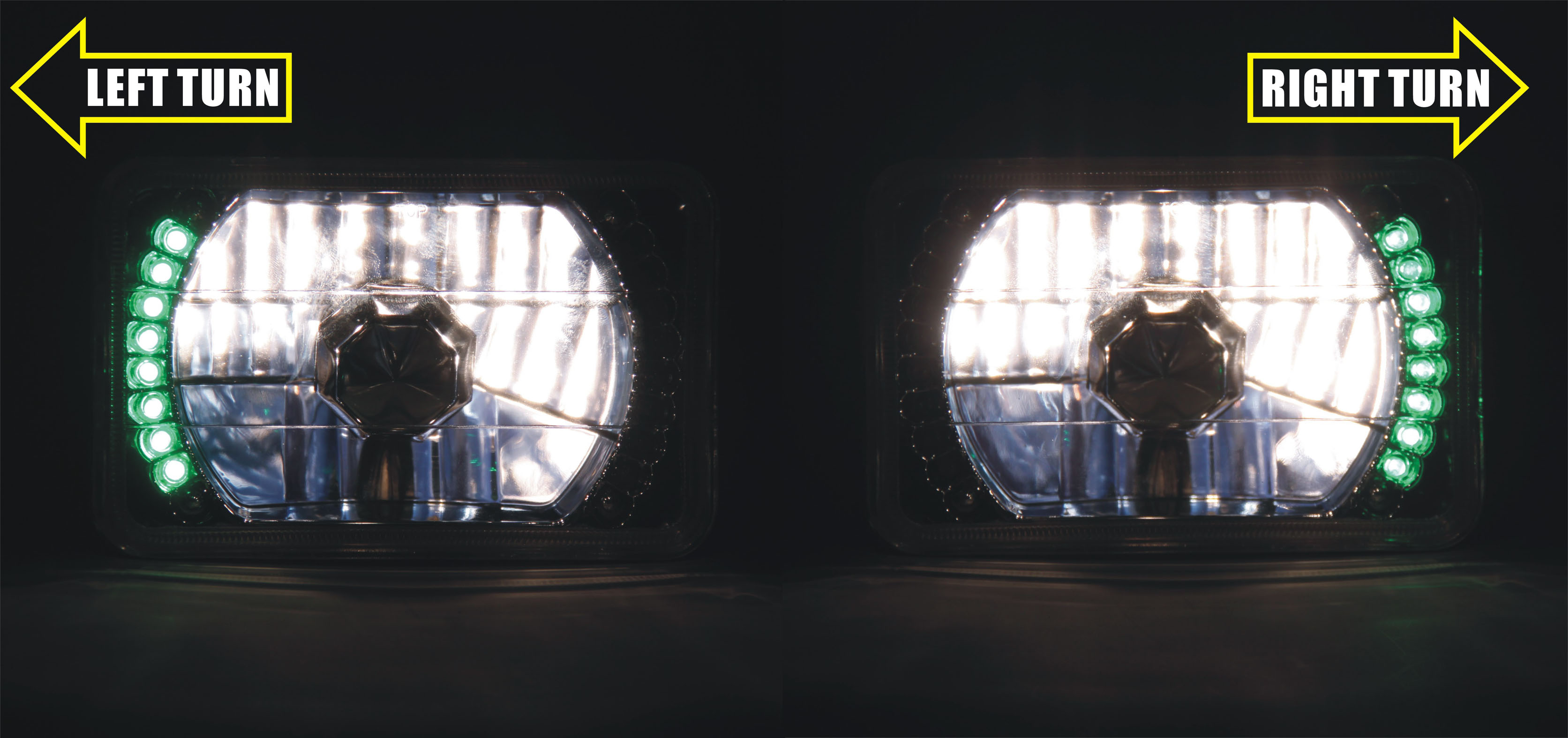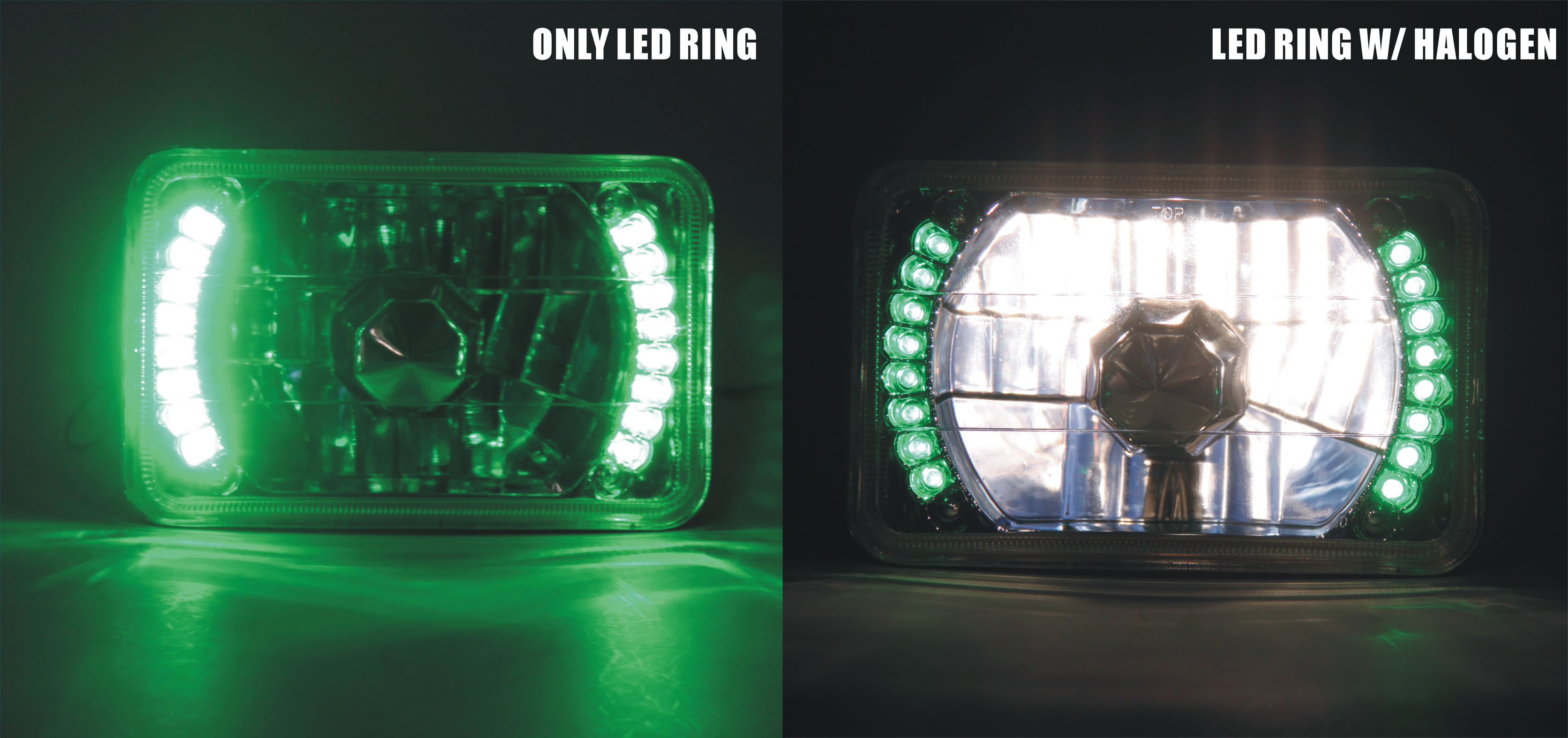 CARZOOM CZ-5S624G Black 4" x 6" Plastic BMC H4 Halogen Headlight with Reflector - Pair (Green LED Ring)