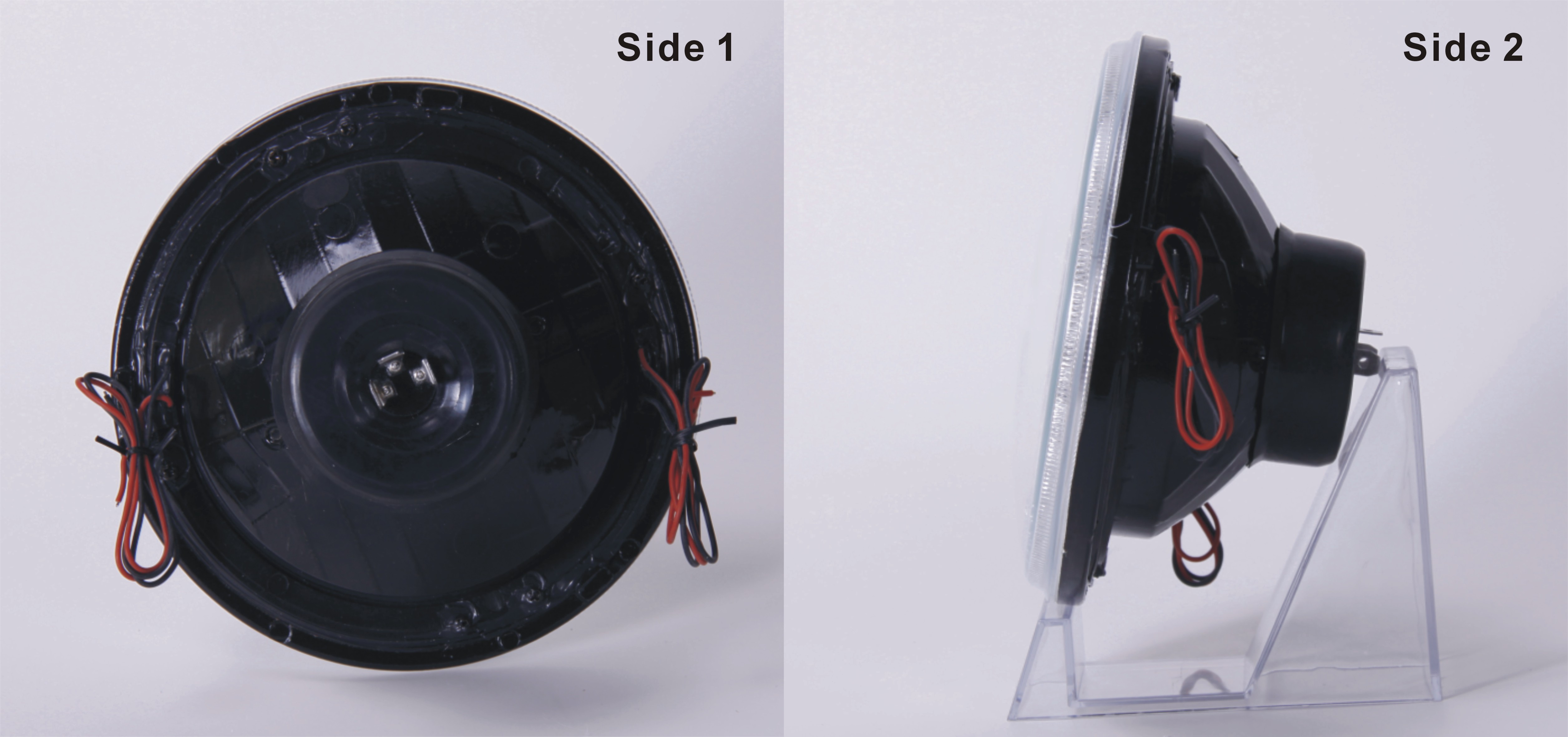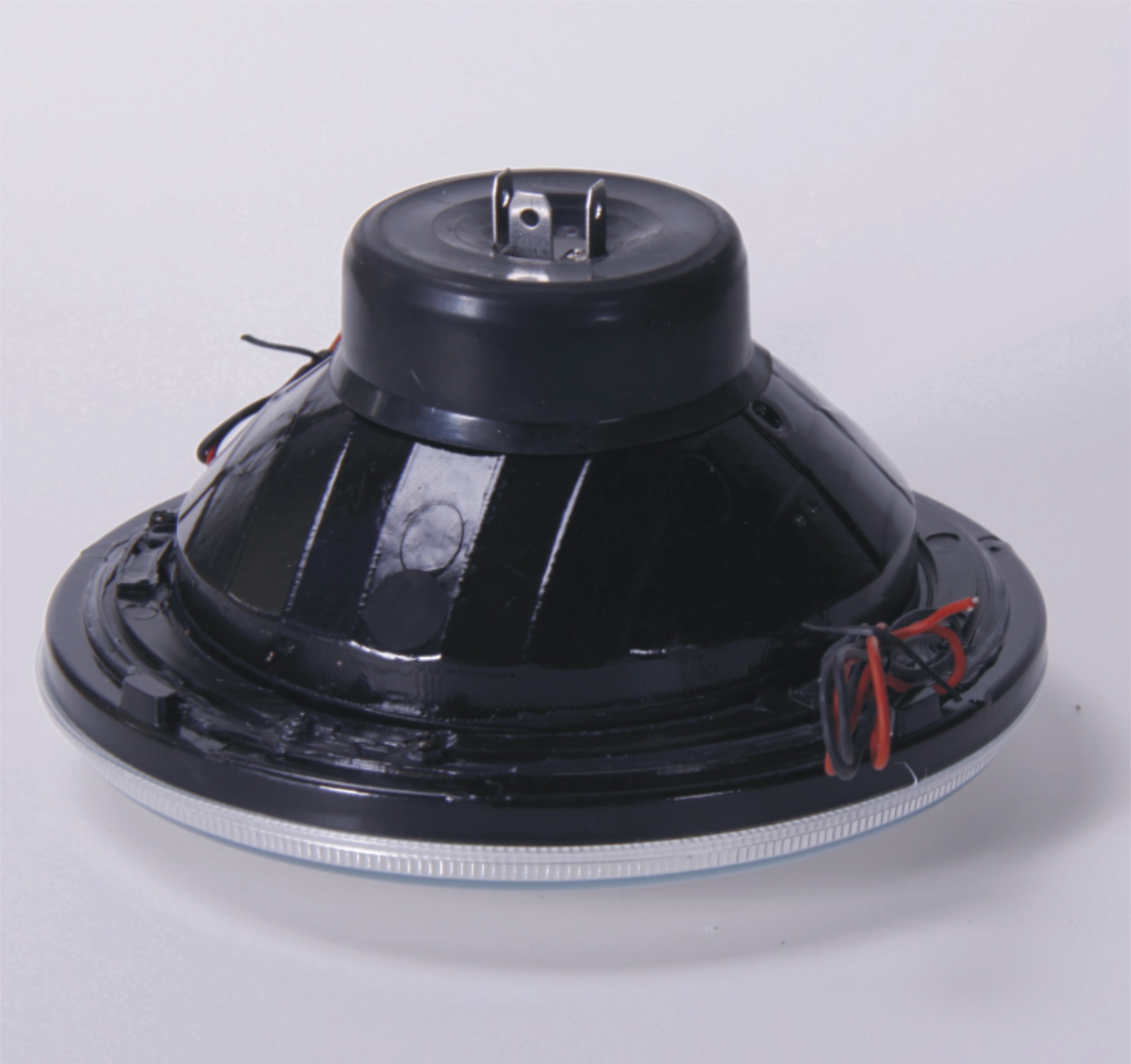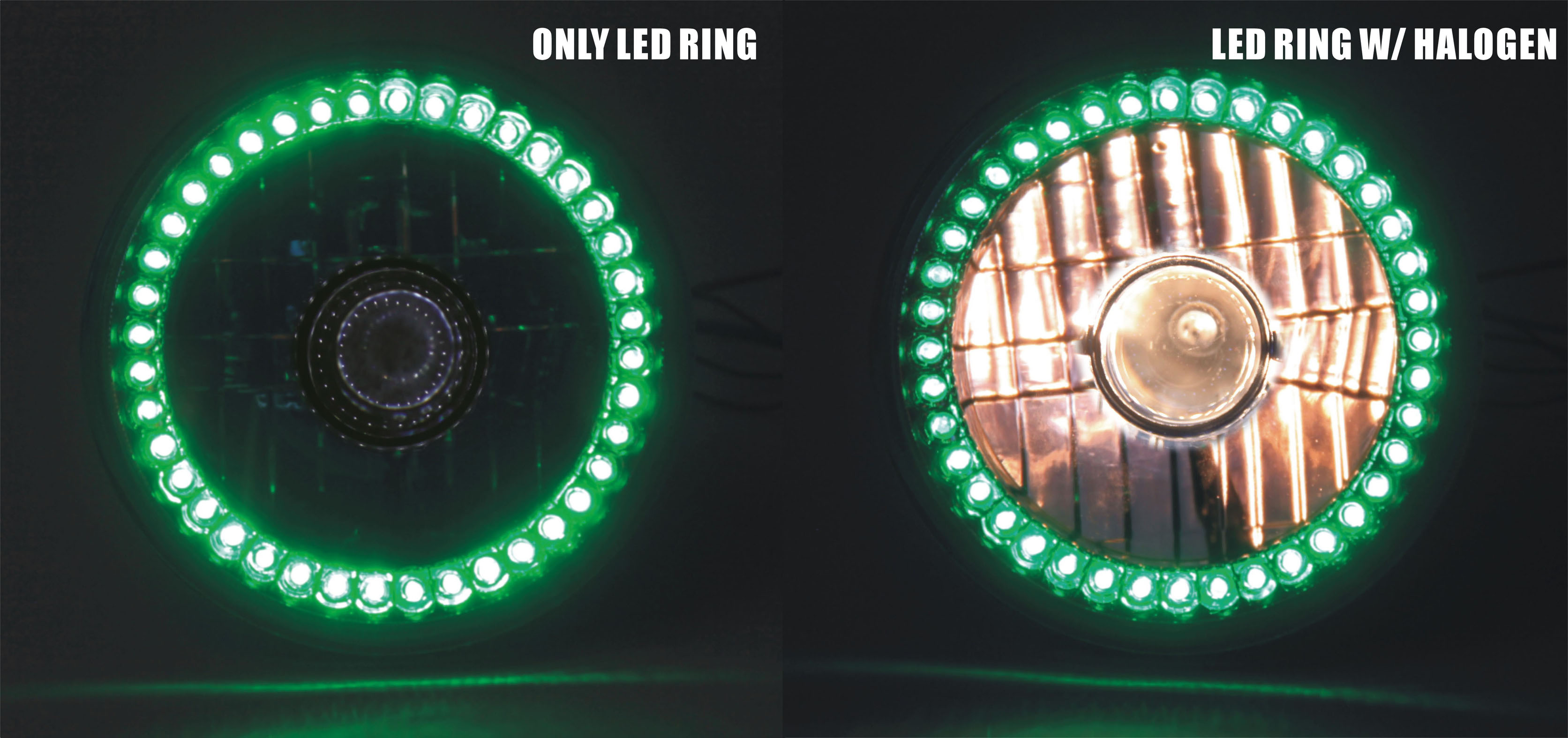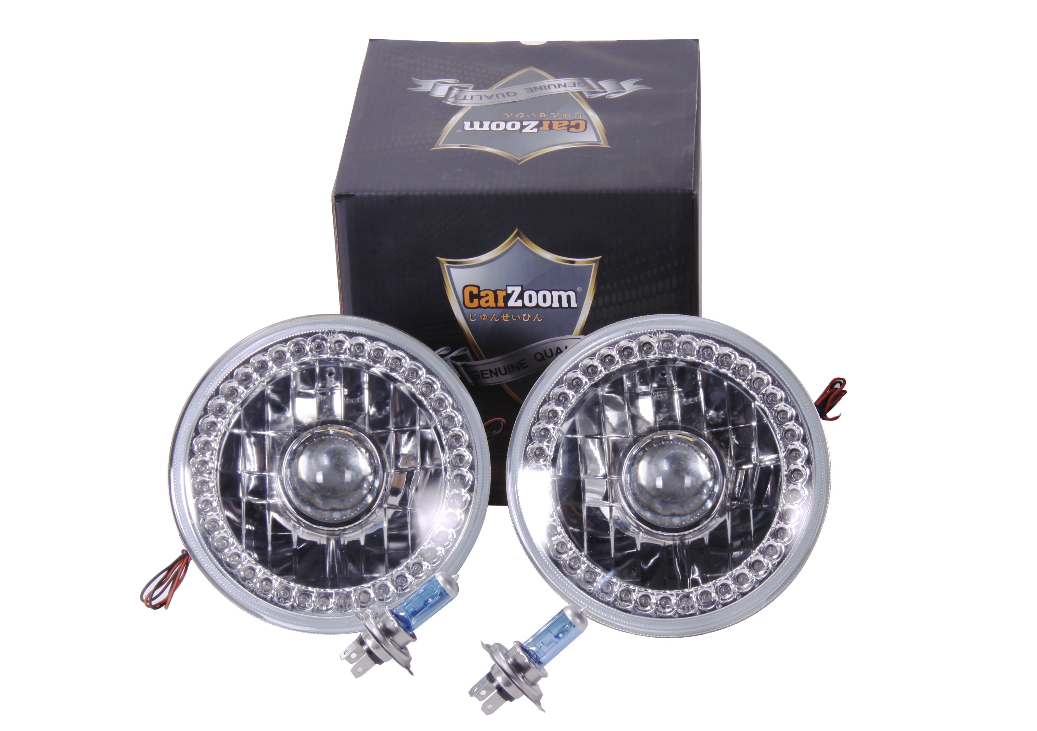 CARZOOM CZ-7R226G Black 7" Round Plastic H4 Halogen Headlight with Projector - Pair (Green Full Split LED)