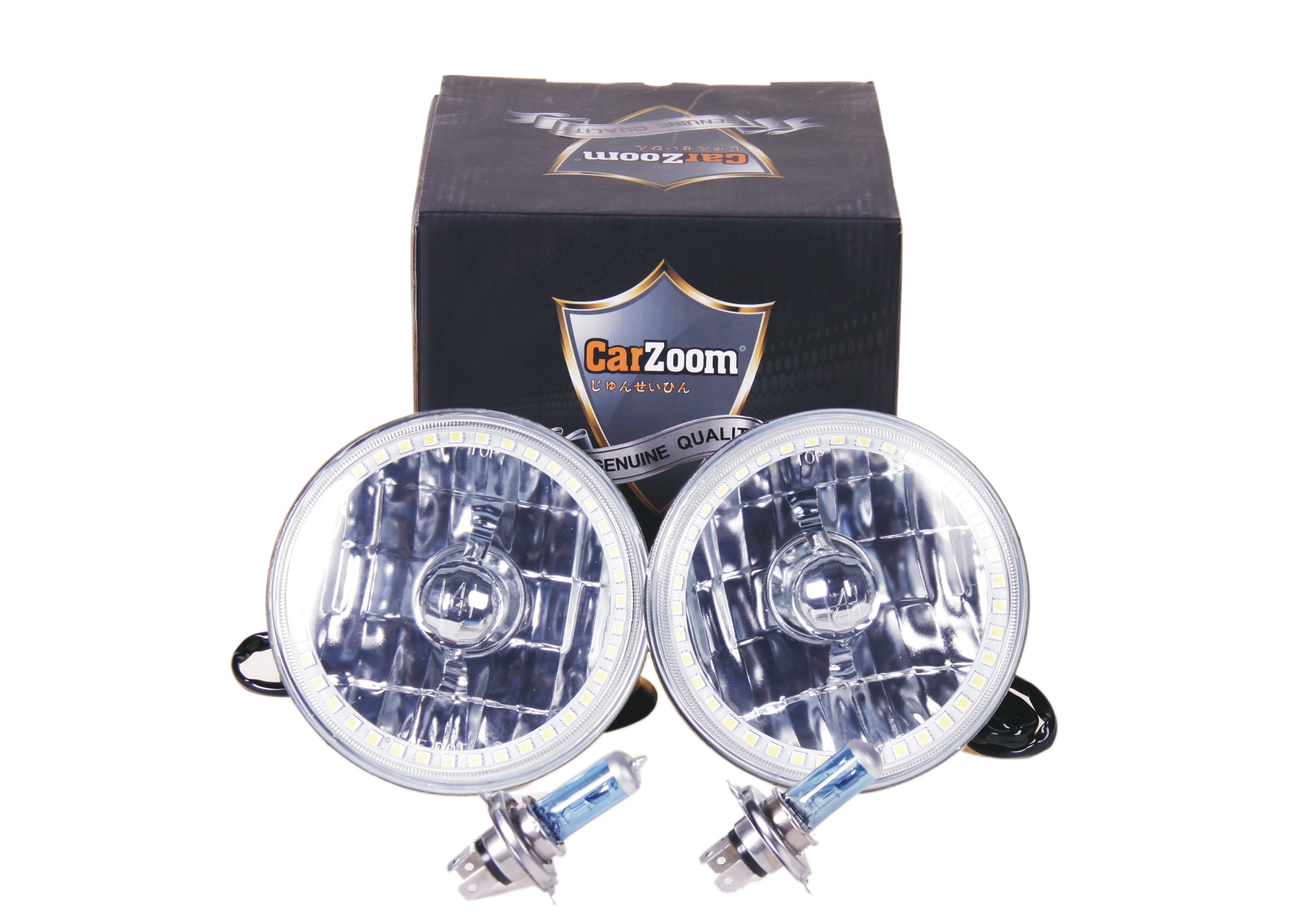 CARZOOM CZ-5R0013W-H Brown 5-3/4" Round Metal Stock H4 Halogen Headlight with Reflector - Pair (High Beam with White SMD Ring)
