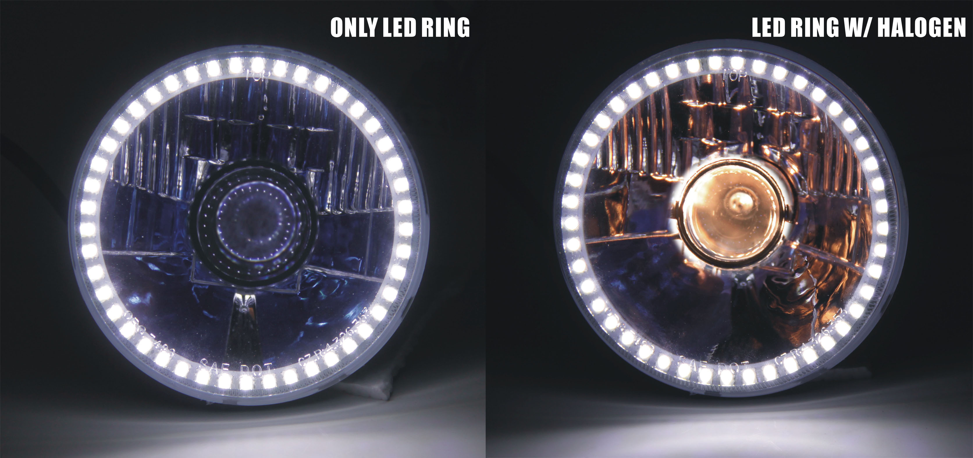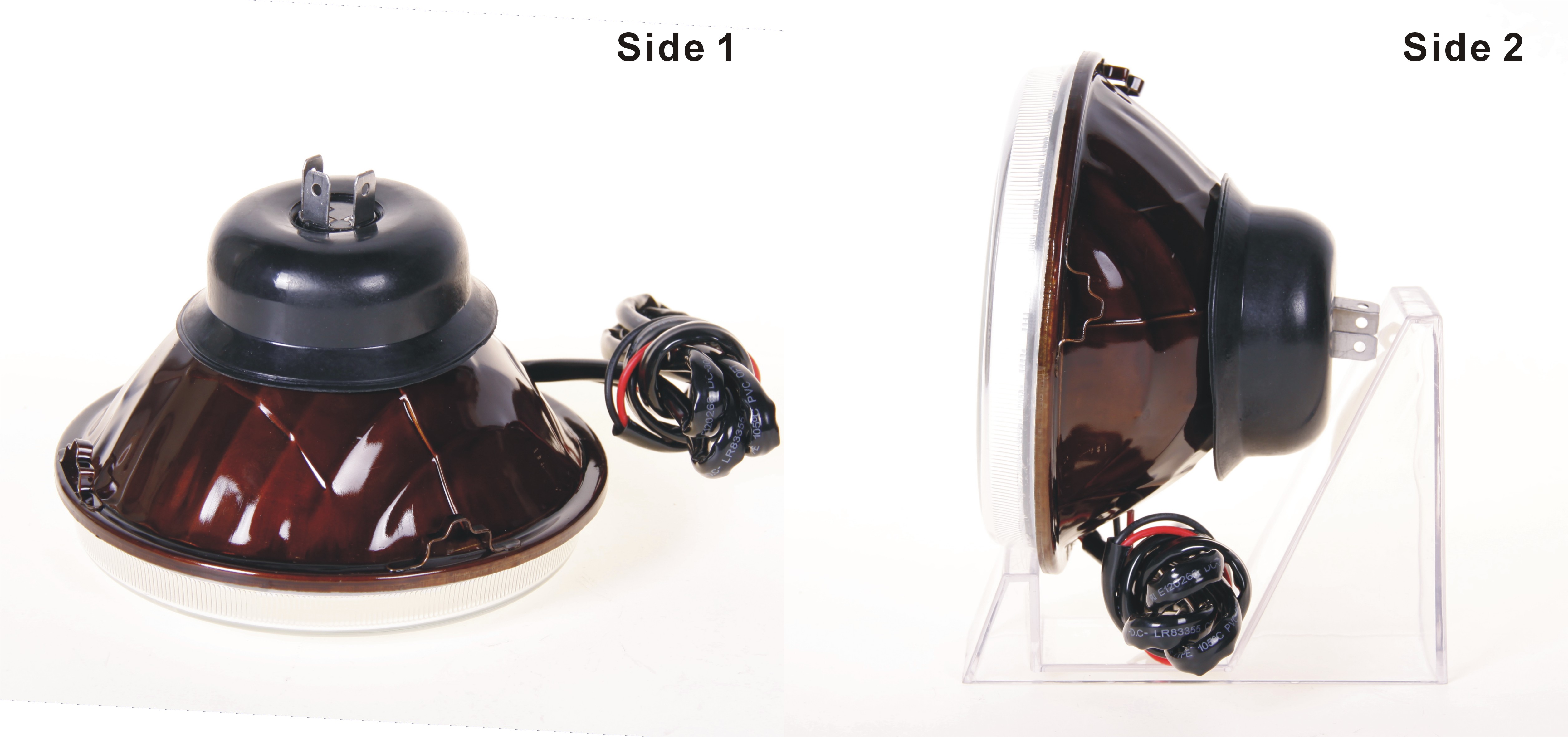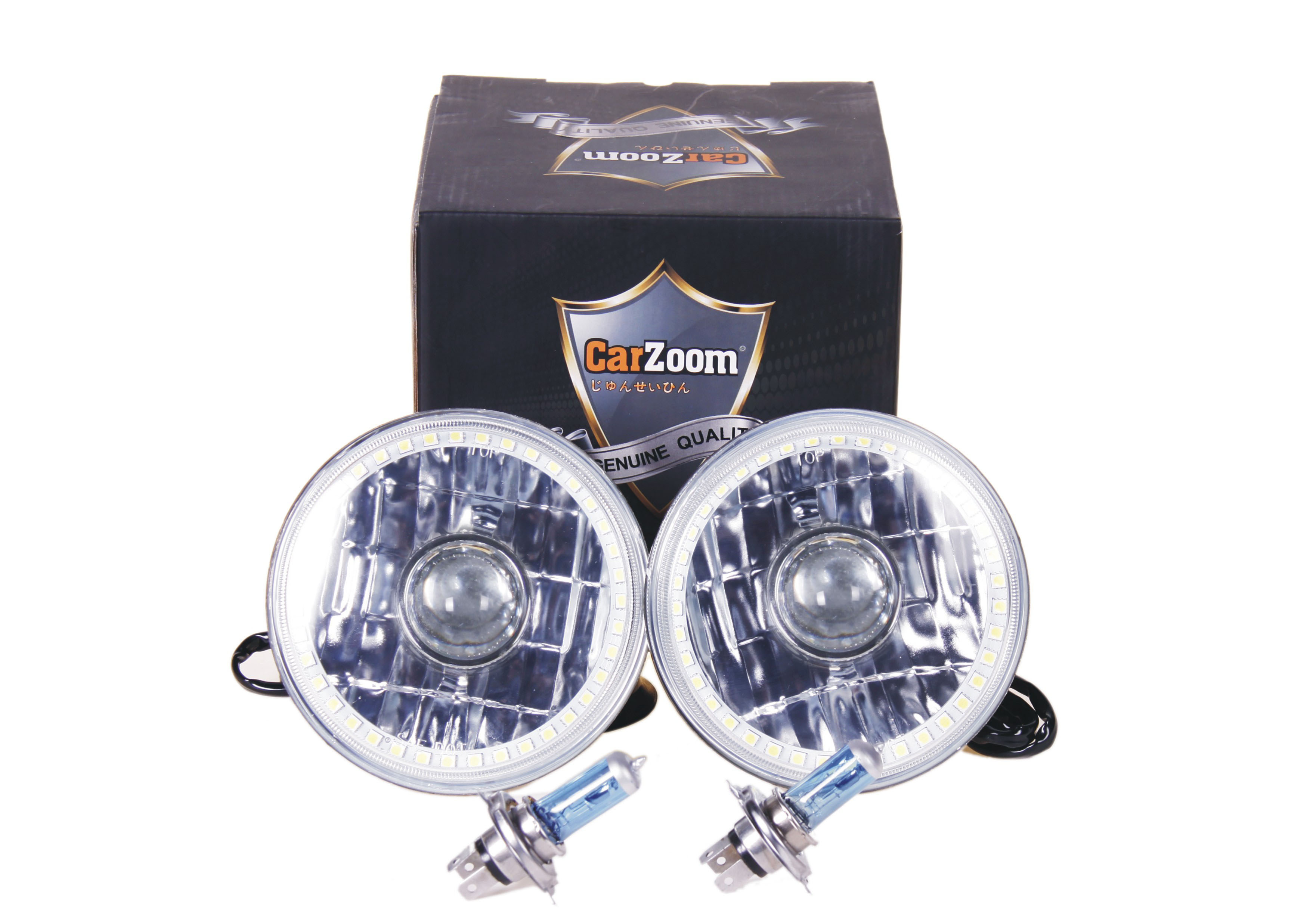 CARZOOM CZ-5R022W-L Brown 5-3/4" Round Metal Stock H4 Halogen Headlight with Projector - Pair (Low Beam with White SMD Ring)