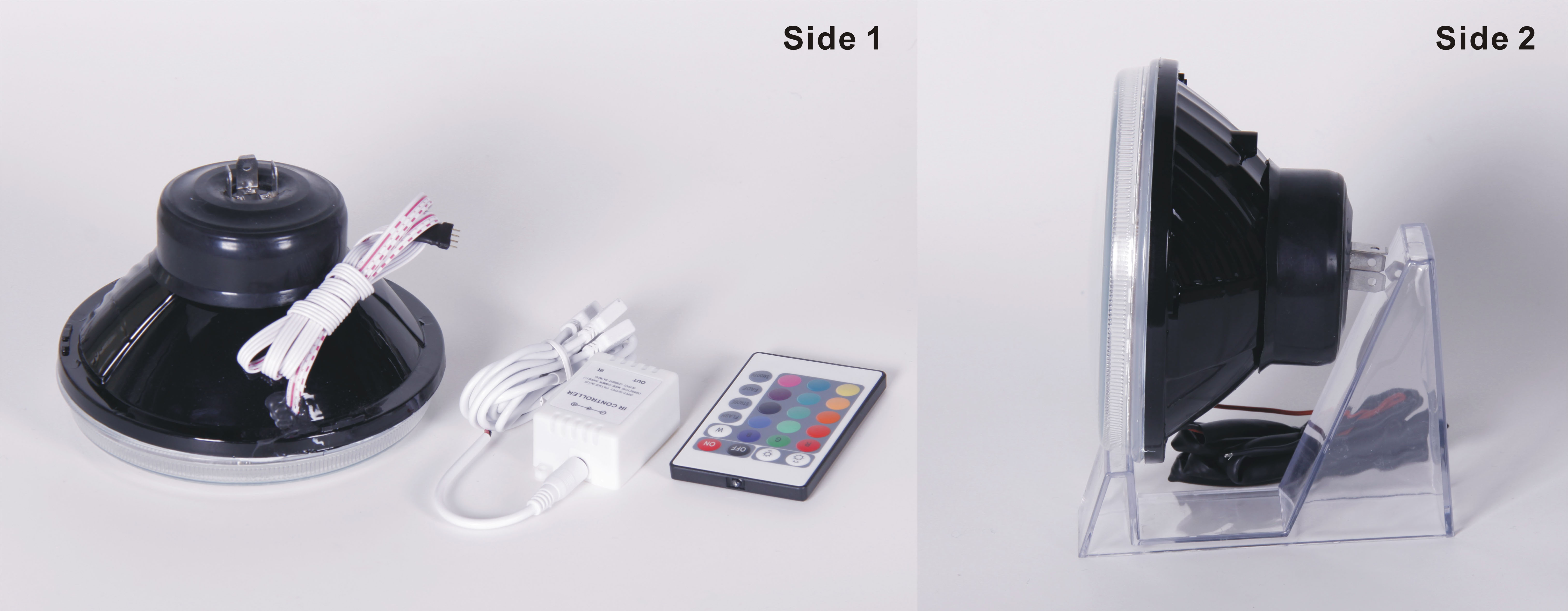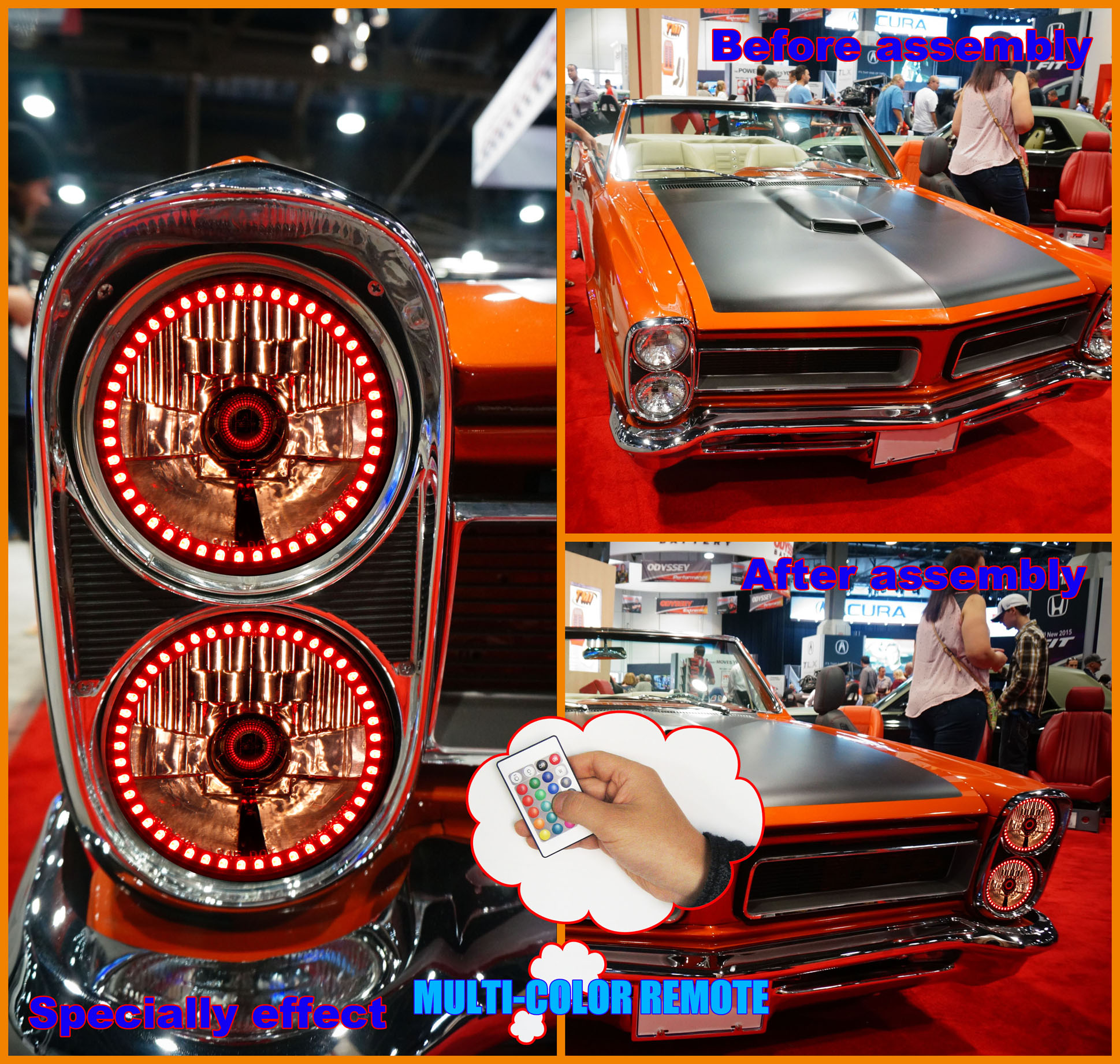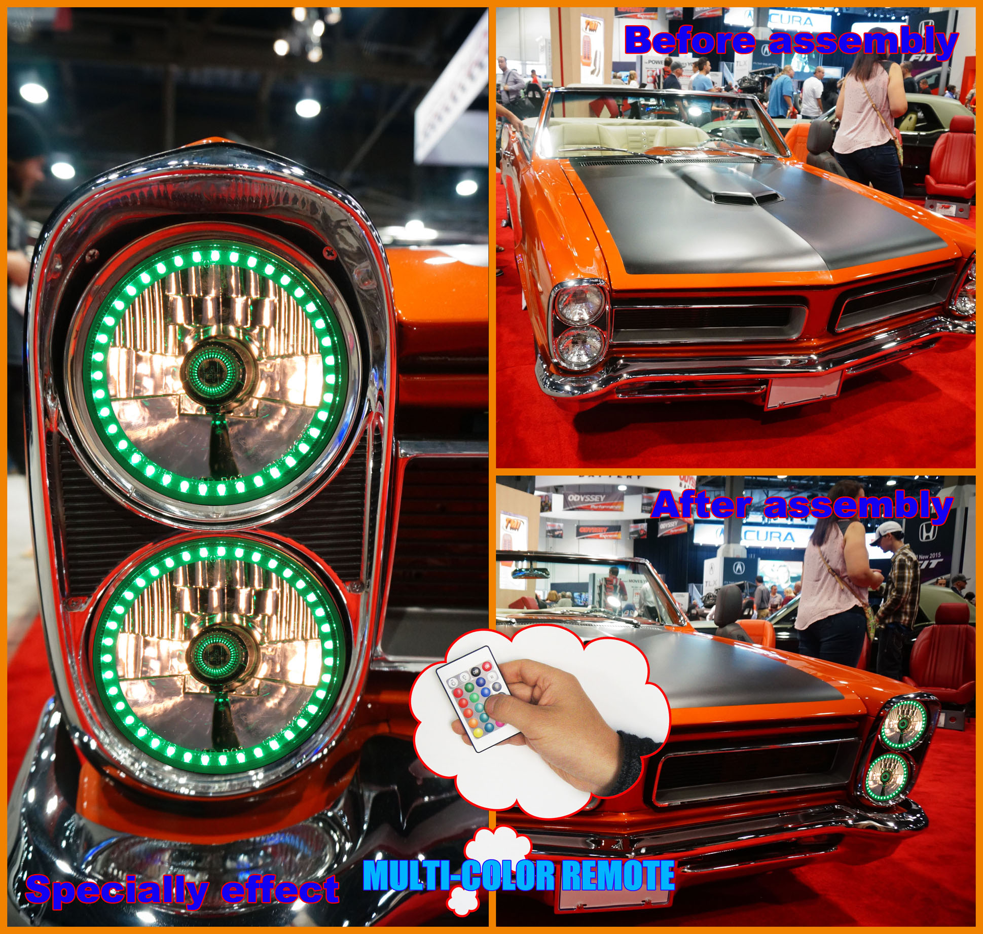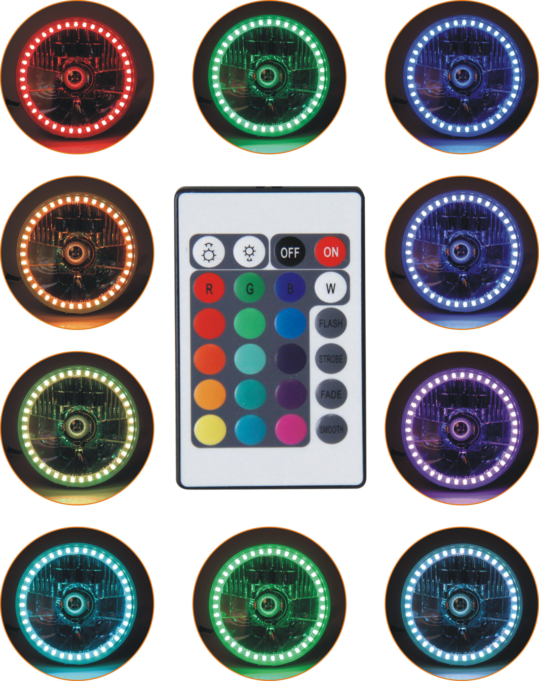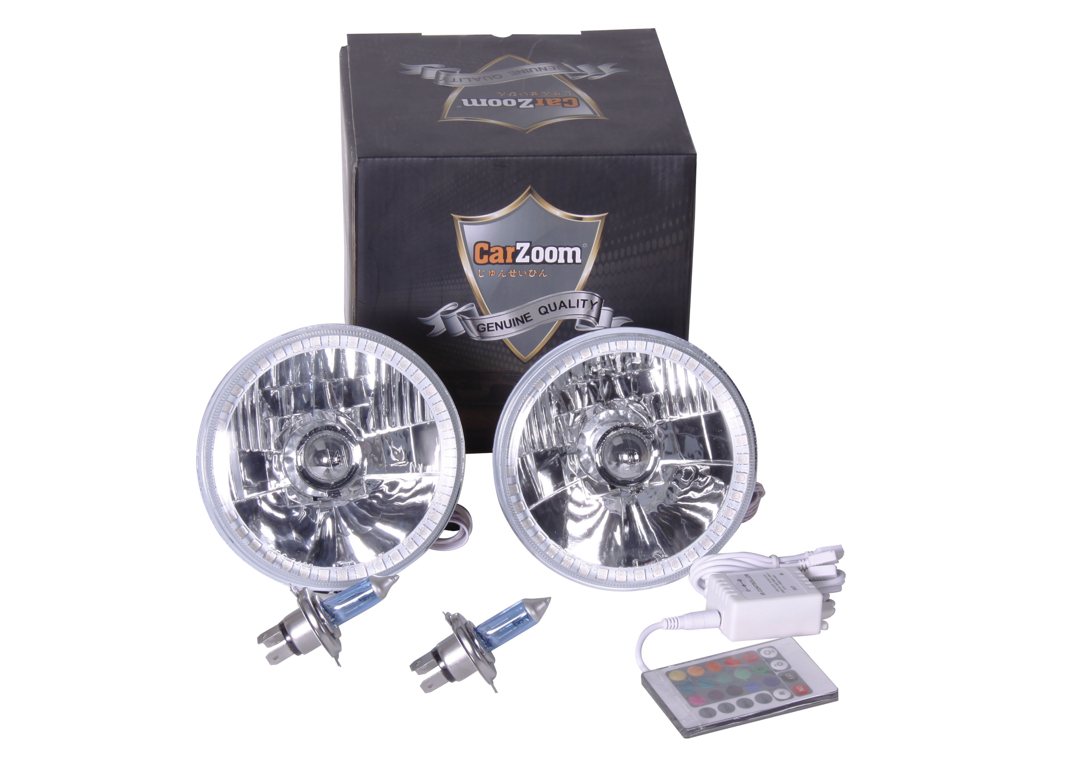 CARZOOM CZ-5R033 Black 5-3/4" Round Plastic BMC H4 Halogen Headlight with Reflector - Pair (RGB Multi-Color SMD Ring)